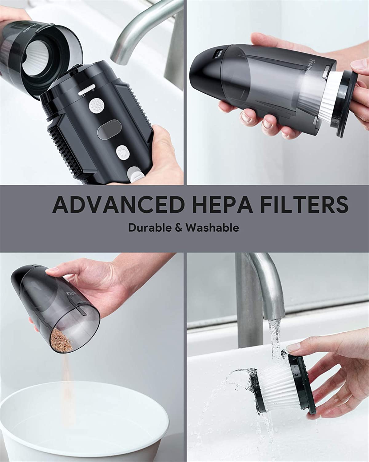 POWERFUL SUCTION: The portable vacuum is equipped with a 120W high quality motor which provides 6KPa strong suction. With Techvilla hand-held vacuum, you can clean your car and your home easier and more efficient.