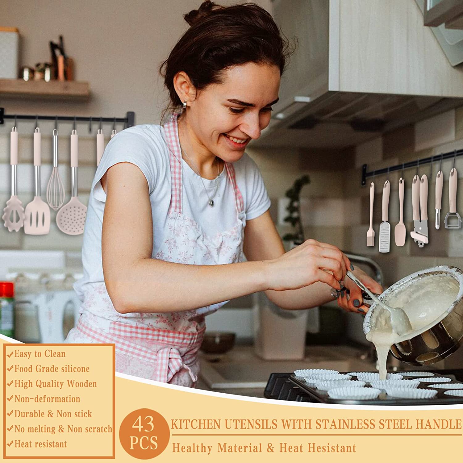 Silicone cooking tool set, chef 43 pieces heat-resistant kitchen tools