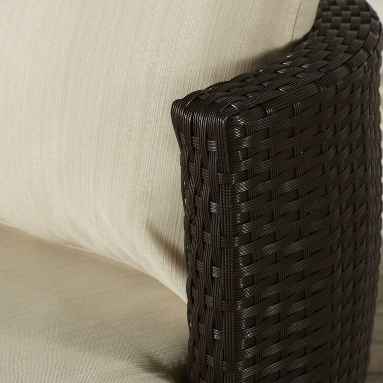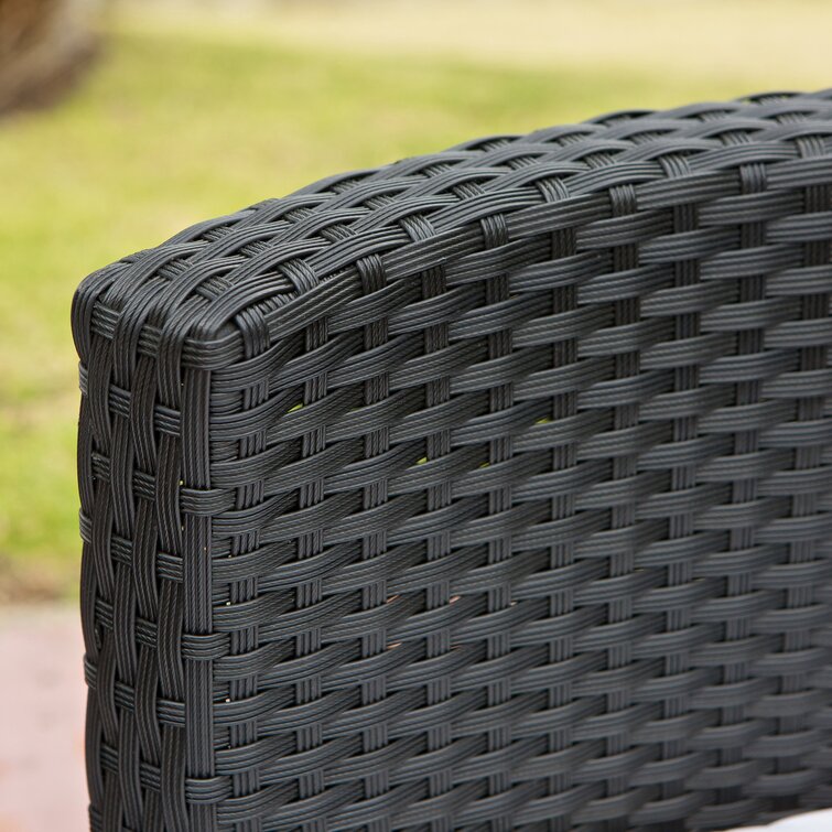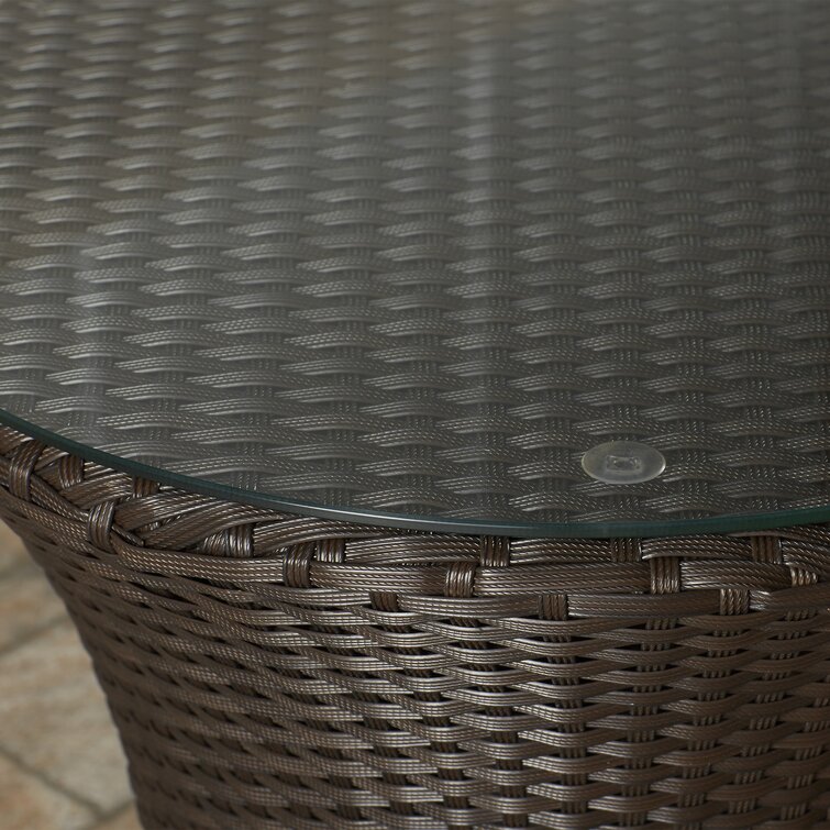 This 2-person seating group comes with three items – two chairs and a side table – so you have a spot to kick back and relax with a friend. Each weather-resistant piece features woven detailing for a textured and breezy modern look. It has an inner aluminum frame that's been wrapped in wicker rattan, while vinyl cushions are filled with foam to give you plenty of support as you lounge for a spell. Whenever they need a refresh, simply unzip the cushion covers and toss them into the wash. The end table comes in an hourglass shape for a mid-century modern look, while a glass tabletop makes it a cinch to clean accidental spills. No assembly is required.