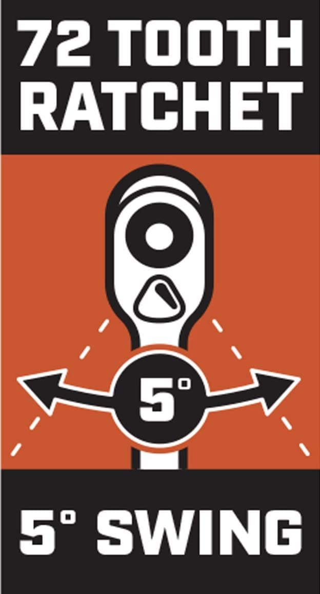 • The Crescent Professional Tool Set has a newly designed 72T quick release ratchet