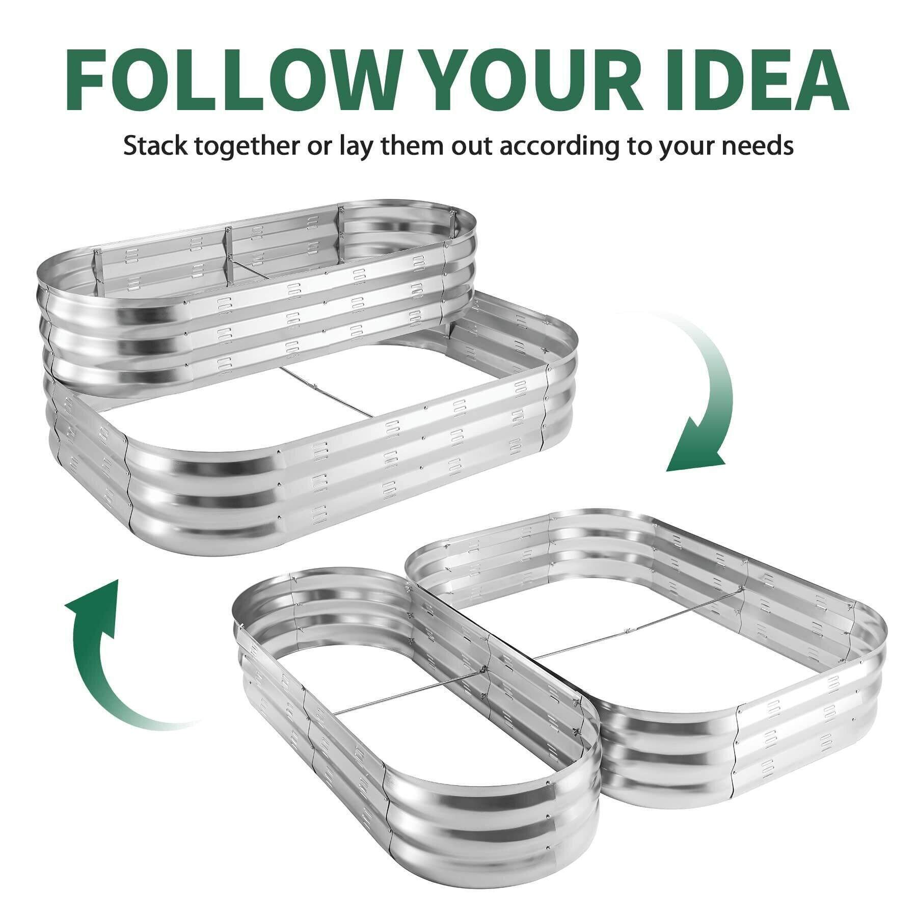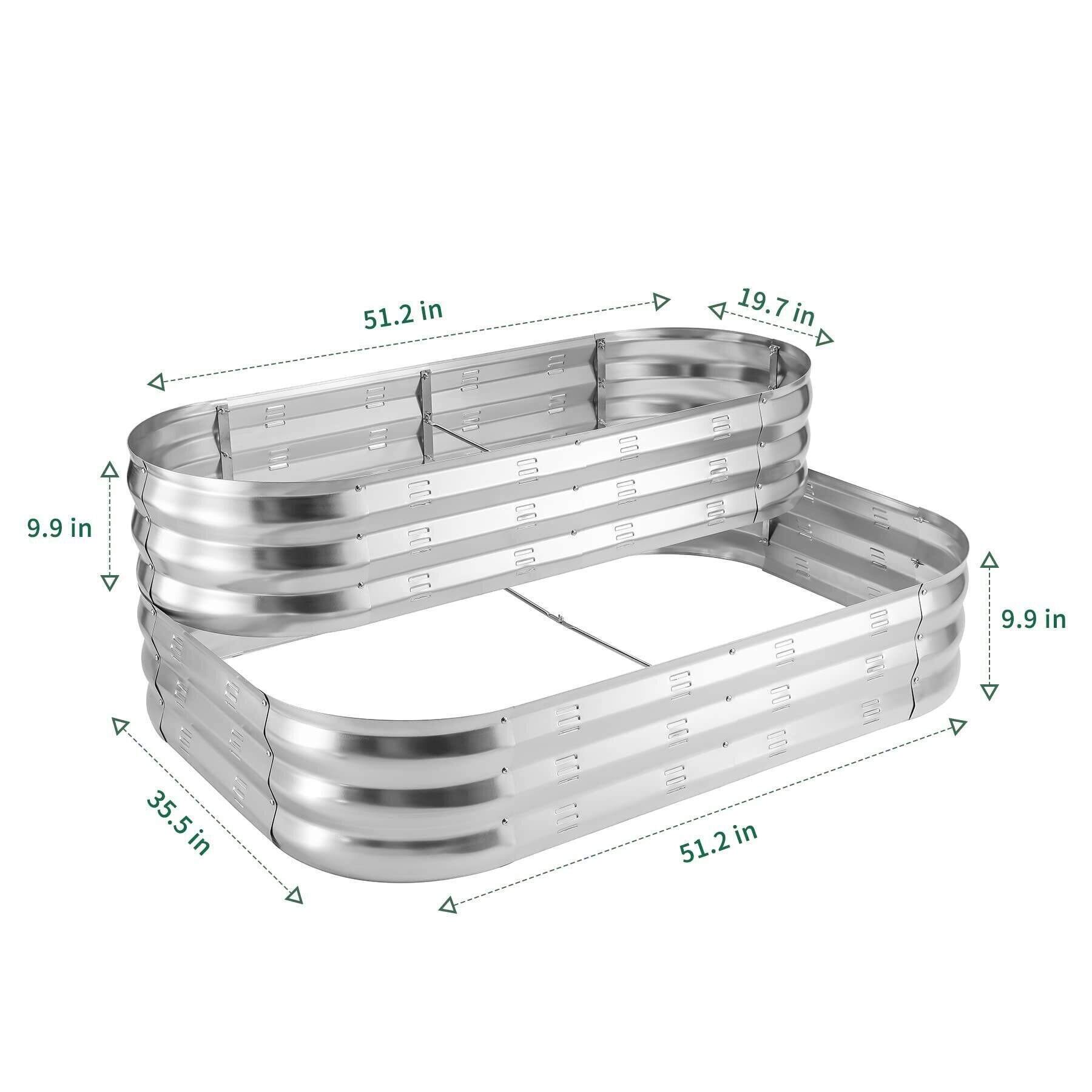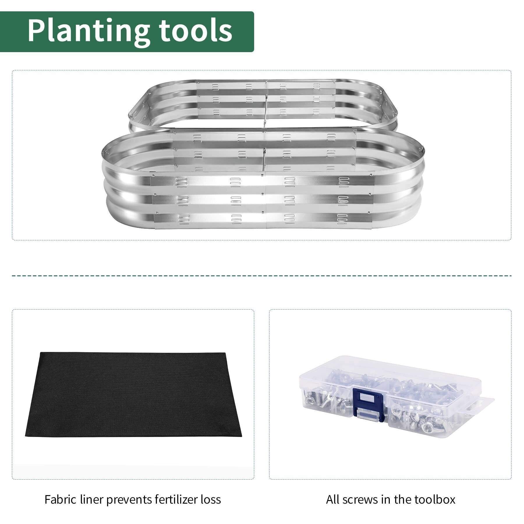 More Reasons Why You'll Love This Raised Garden Bed ✔ High-quality thick material: The outdoor raised garden bed is made of galvanized solid steel plates, the average thickness of the galvanized sheet reaches 0.6mm, it can stay in contact with the ground for a long time and is resistant to corrosion . It maintains its original shape even after many years of use. ✔ Different Depth Designs Fit Different Plants: Designed in depths of 9.9 and 19.8 inches, this raised garden bed is perfect for growing plants and vegetables with short to long root lengths; buy a raised planter to get two sizes, which is a great deal. ✔ Easy to install: This outdoor planter is easy to install, with instructions detailing each step of the product's installation details, and a clear and concise installation video to help you with installation.