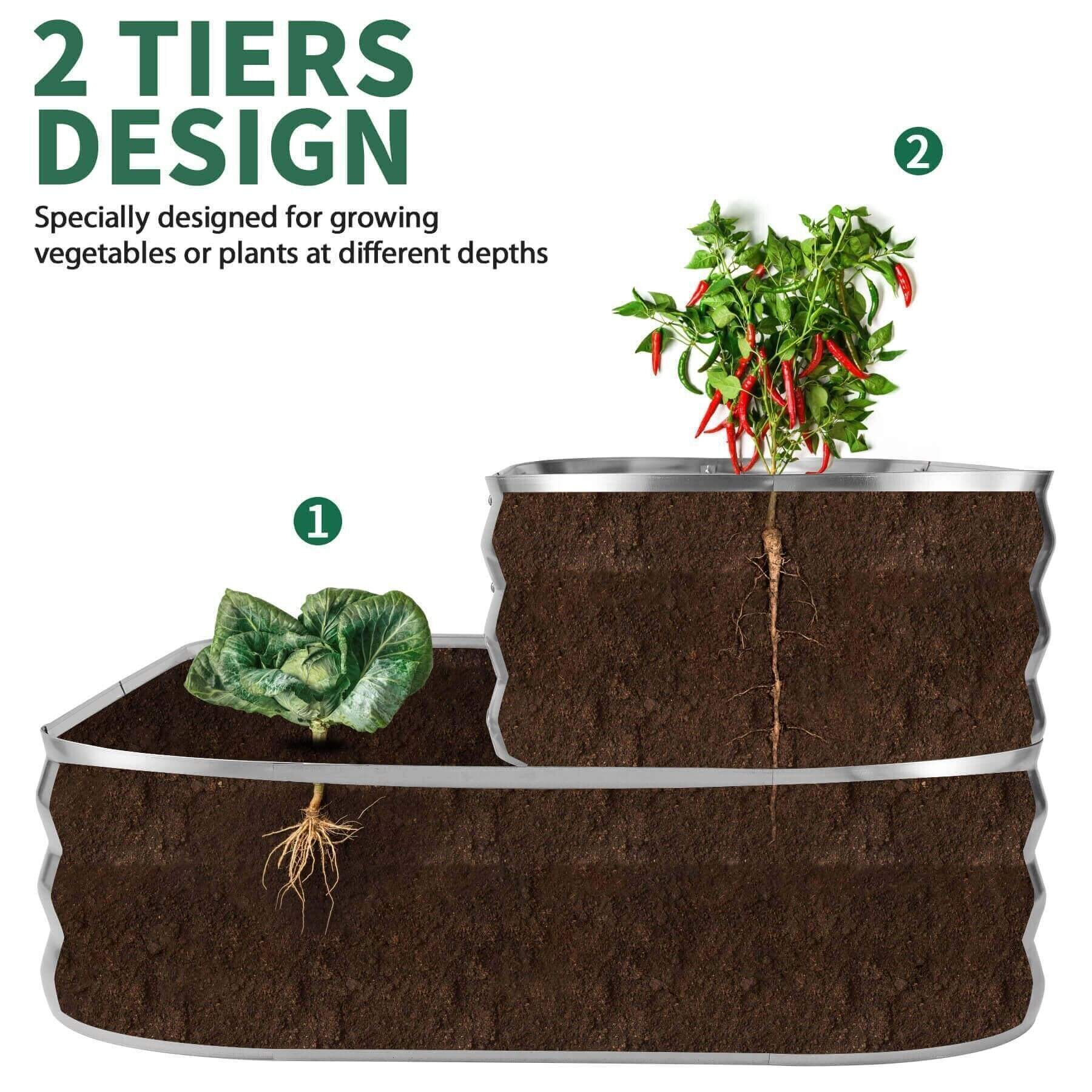 2 Tier Raised Garden Bed Kit - Designed with 2 different depths, perfect for growing plants and vegetables with short to long root lengths. You can also lay 2 sections in a flat line for 2 different sized planting areas.